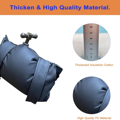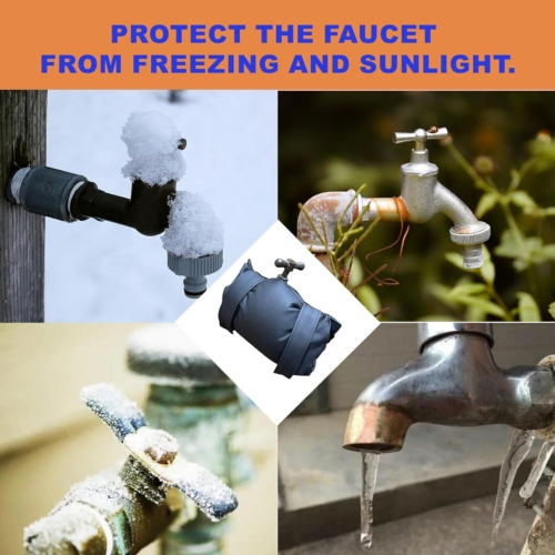 Universal size: The outdoor faucet cover measures 26 x 18 cm/10.23 x 7.08 in, which is suitable for most standard outdoor and garden faucets. Please measure the size before purchasing to keep the faucet safe through this year.Faucet cover for all season: The surface of the faucet sleeves is made of high-quality PU leather, and the interior is filled with thickened insulation cotton. Protect the outdoor faucet from freezing in the cold winter and not cracking in summer, to reduce additional maintenance costs.Four season universal: As the best choice for winter, it can protect outdoor faucets from freezing and bursting. In summer, the reusable faucet cover can also protect it from the hot sun.Easy to install: The faucet cover is easy to use. With adhesive tape, it can be fixed by simply pasting and adjusted according to the size of the outside faucet. It can also protect the faucet when using water, making this year more convenient. Black PU only needs to be gently wiped, and the outdoor insulated spigot socks will look new.Best choice: The upgraded new design faucet cover uses high-quality materials and you don’t need to purchase it every year. You can also use outdoor faucet cove to protect anything you want from freezing and hot sun, and it is suitable for multiple items.