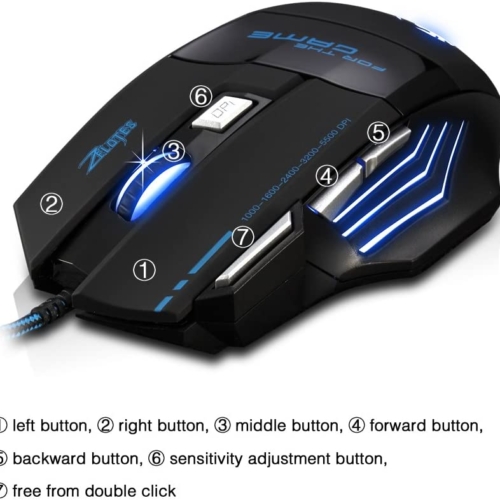 ZELOTES 7200 DPI Game Mouse This is a new 7200 DPI 6 Button USB Wired Gaming Mouse, with multifunction, such as, high quality wire material: the red and black braided wire sync equipped the strong defense magnet ring which can strong anti-interference, Ultra-strong and durable, Gaming adjustment, Comfortable palm feeling, Relieve tired, etc. Plug and Play. With this product, you will greatly enjoy the games. Features: – Intelligent connectivity, no need to code, plug & play – 6 buttons with scroll wheel – Tracking systems: Optical – The Max DPI:7200DPI – Ultra-precise Scroll Wheel – Optical technology works on most surfaces – Ergonomically designed, long-term use without fatigue – Switch Life: 5 million cycle