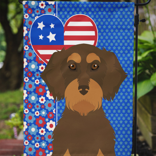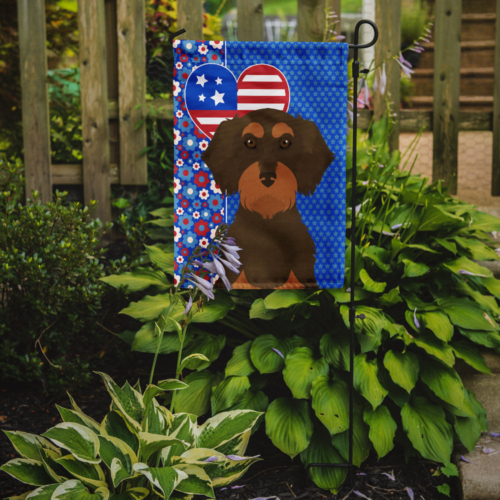Garden Flag featuring breed specific Dachshund artwork. This Garden Flag is from Caroline’s Treasures collection USA Love America. Enhance the beauty of your garden, patio, or yard with Caroline’s Treasures Decorative Garden Flag, proudly made in the USA. Crafted from two pieces of thick, double-sided polyester fabric, this 2-ply garden flag is designed to withstand various weather conditions, making it water-resistant and weatherproof. Featuring correctly readable words on both sides, this garden flag offers a delightful visual experience from any angle. With its heavier weight, it stands out among other garden flags, ensuring stability and durability even in wind, rain, and snow. Measuring approximately 11 1/4 inches by 15 1/2 inches, this flag allows you to personalize your outdoor decor. It comes with a 1 1/2-inch sleeve sewn in, allowing easy attachment to any standard garden flag stand or garden size porch hanger (sold separately). Make a statement in your outdoor space with Caroline’s Treasures Decorative Garden Flag, a vibrant and high-quality flag that adds color and personality to your surroundings. Proudly made in the USA, it’s a symbol of quality craftsmanship and attention to detail. This Garden Flag is from Caroline’s Treasures Dogs category of products.