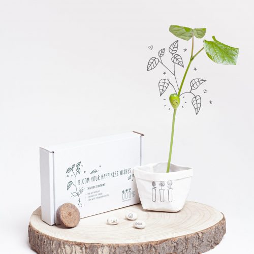 A gift that you will enjoy for a long time because the plant grows and continues to grow … 1 seed pot – coconut swelling tablet – 1 tube with 3 beans – instructions for use.