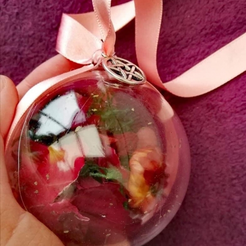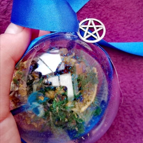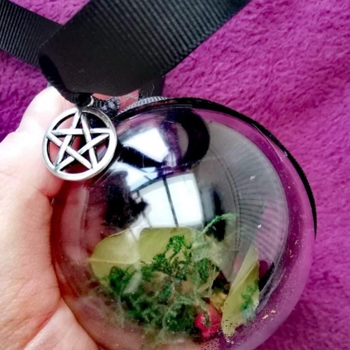 Spell balls.. Hang them on your door or anywhere in your home. Each ball comes with a spell chant designed for that purpose for you to say when you hang them and are full of herbs, flowers, resin, crystal chips, feather and has a protective pentagram attached .. We have positively charged each ball with added blessings .. We have available: Protection Anxiety and depression Love Wealth Rememberence ball (this one has a mini scroll for us to write your loved ones name on)