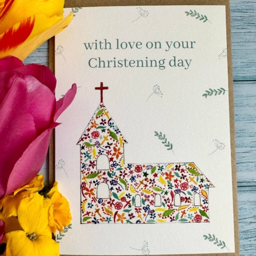 With love on your Christening day | | Nature | Love | Eco Friendly Card | Colourful | Friend | Blank | Occasion | Greetings | Cute | Watercolour | Jen Winnett Art | Friend | Couple | Baby | Congratulations