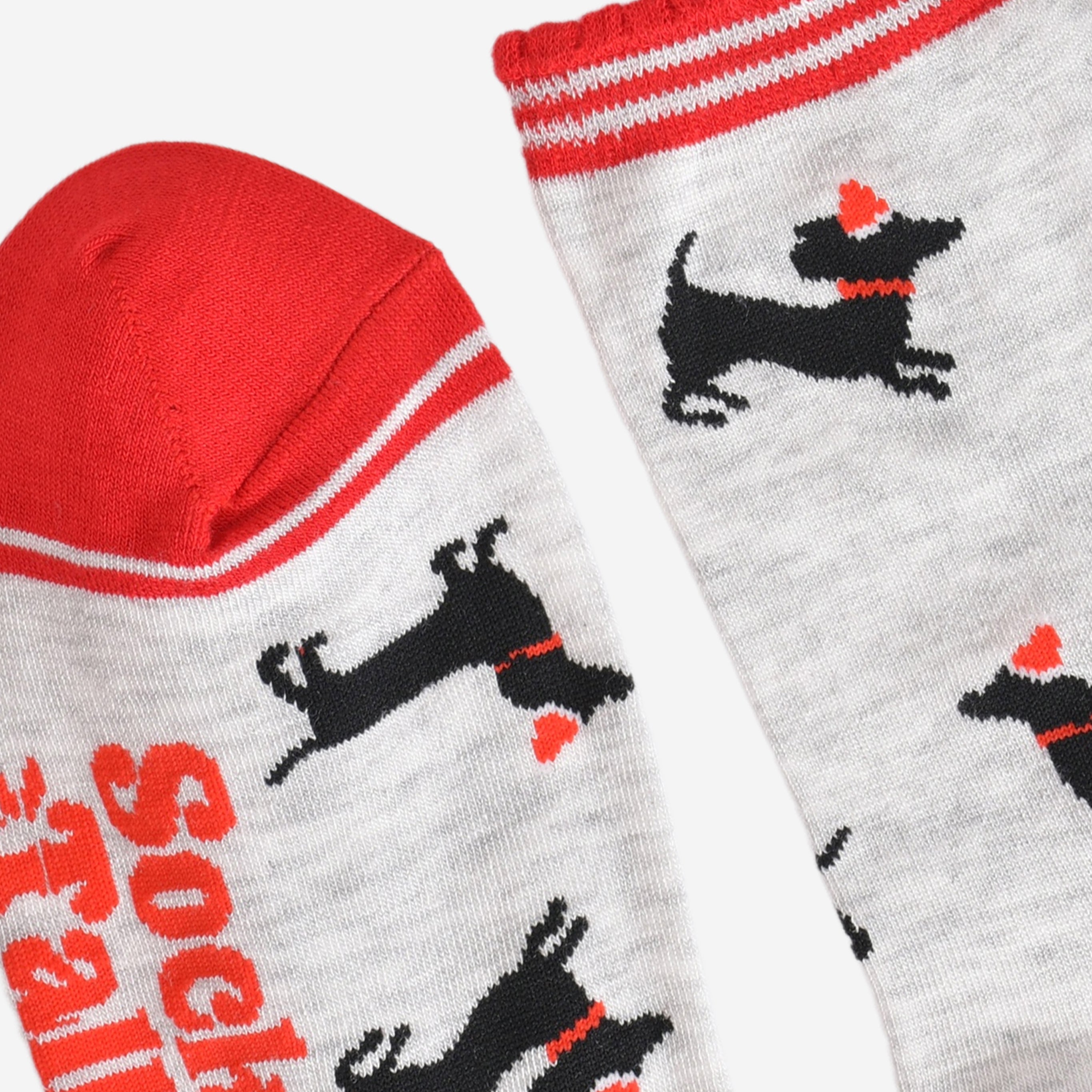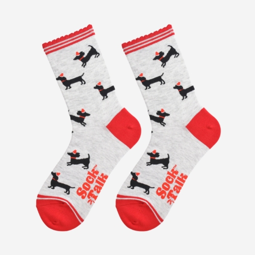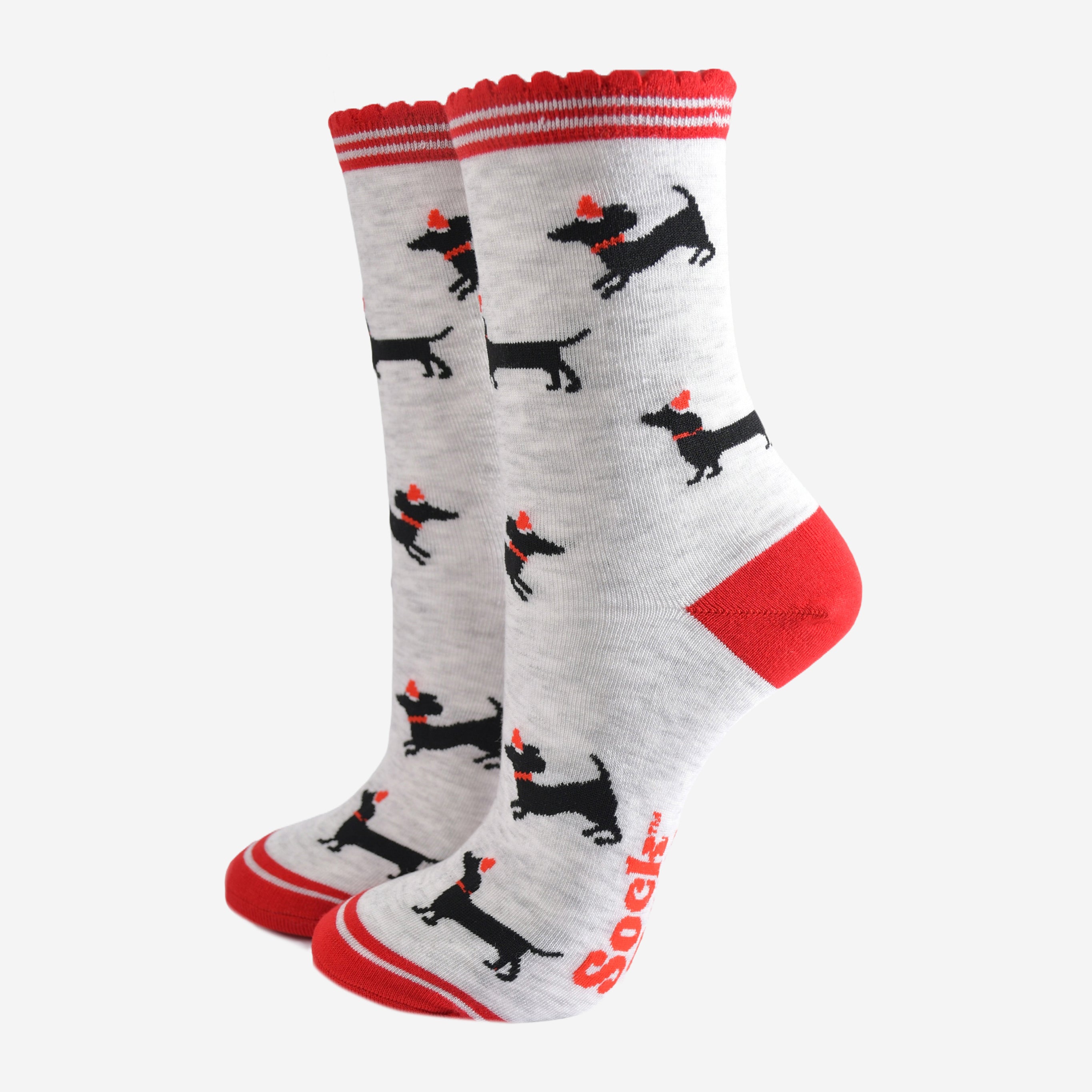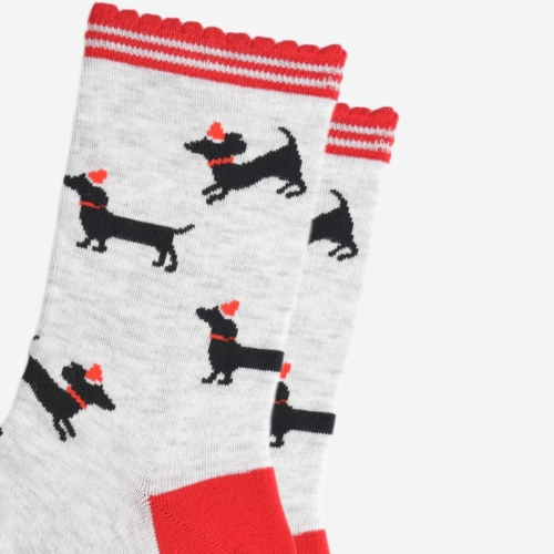 ?? PERFECT FOR Gift for her, Christmas, secret Santa gift ?? THIS PIECE Designed in the UK, these festive sausage dog socks are crafted from naturally breathable bamboo. A classic grey and red design showcasing playful dachshunds wearing Santa hats. Featuring a luxuriously comfortable scalloped cuff. ?? FABRIC Crafted from antibacterial, antifungal, hypoallergenic, and thermo-regulating bamboo fabric. The fabric feels soft and breathable on the skin. 70% Bamboo, 27% Polyester, 3% Elastane Delicate machine wash Do not tumble dry Made in China
