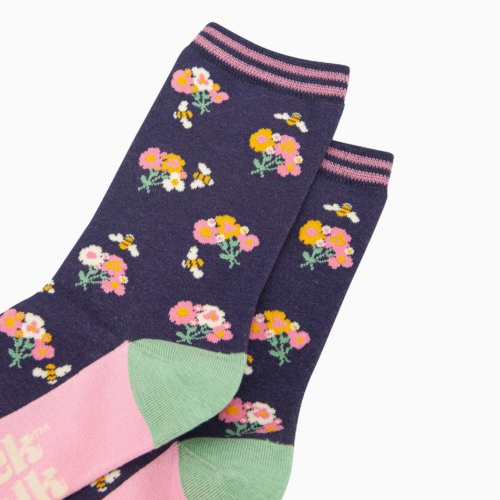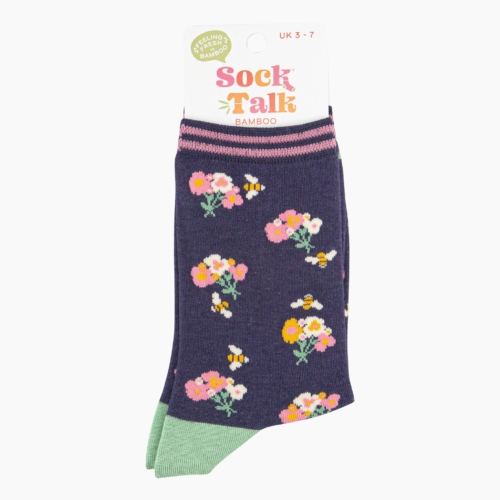 PERFECT FOR Gift for her, birthday gift, Mother’s Day, thank you gift, countryside, gardening, flowers, insects. THIS PIECE Crafted from naturally breathable bamboo these classic ankle socks feature bees and floral posies. These beautiful socks are eco-conscious and feel luxuriously soft. Finished with a classic striped cuff for a comfortable fit. UK 3-7 | EU 36-40 | US 5-9 FABRIC Crafted from antibacterial, antifungal, hypoallergenic, and thermoregulating bamboo fabric. The fabric feels soft and breathable on the skin. 56% Bamboo, 27% Polyester, 14% Cotton, 3% Spandex Made in China