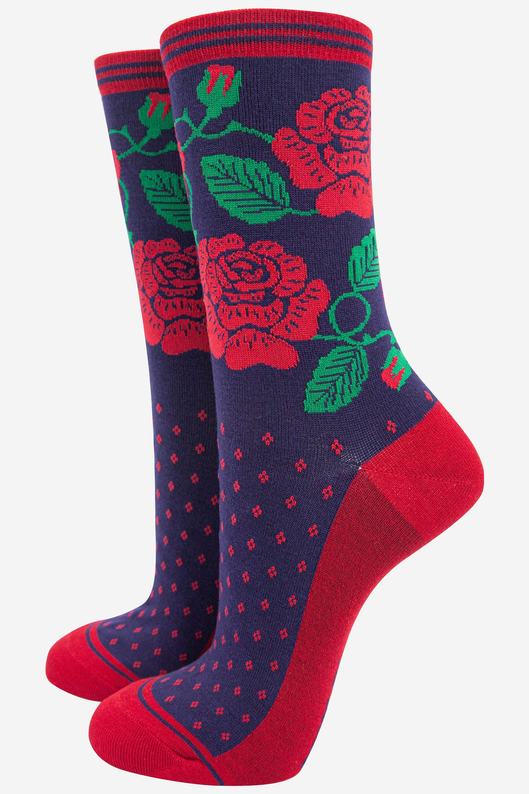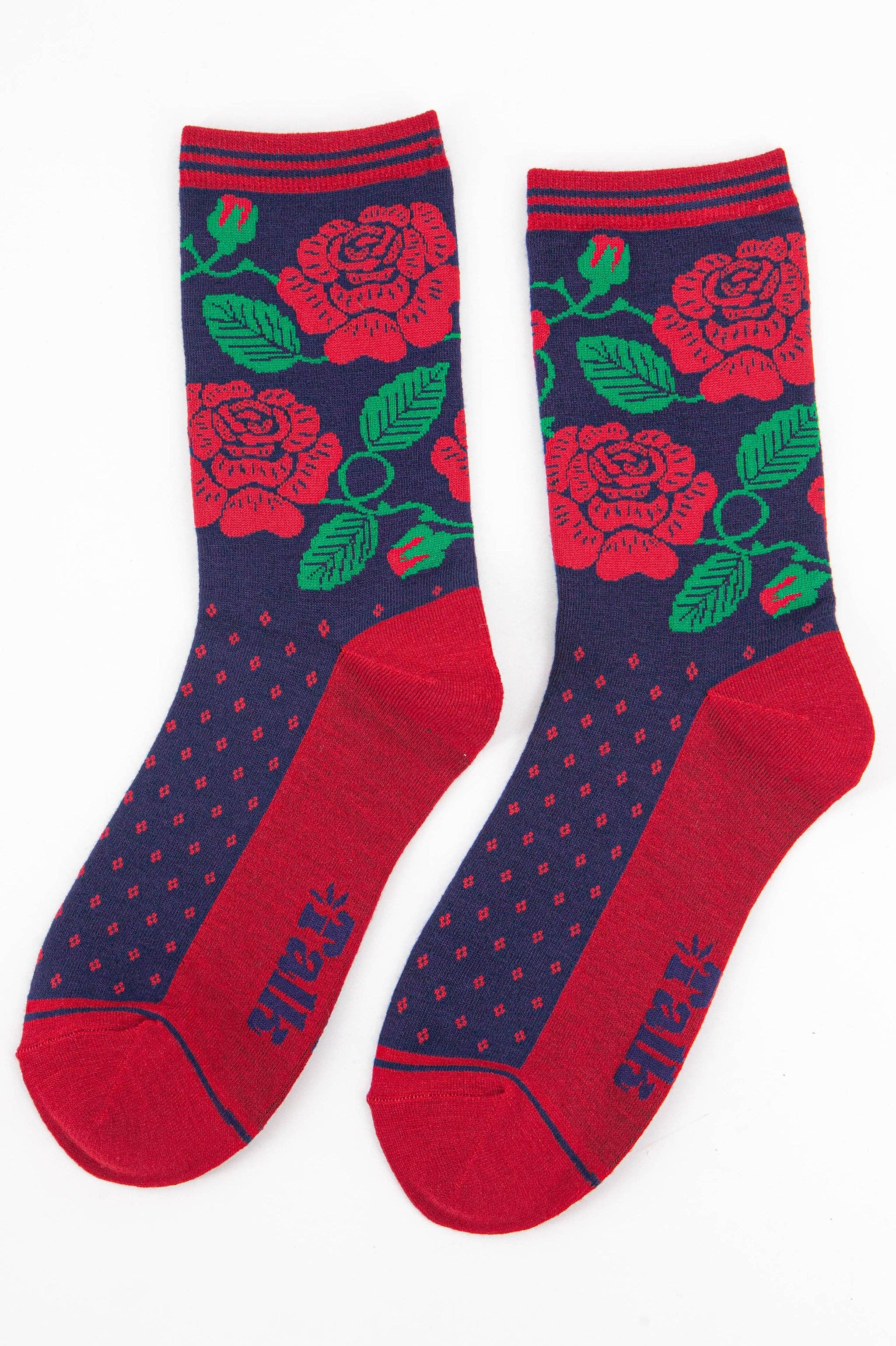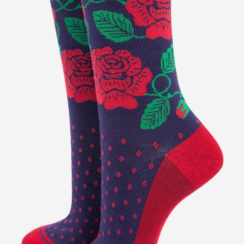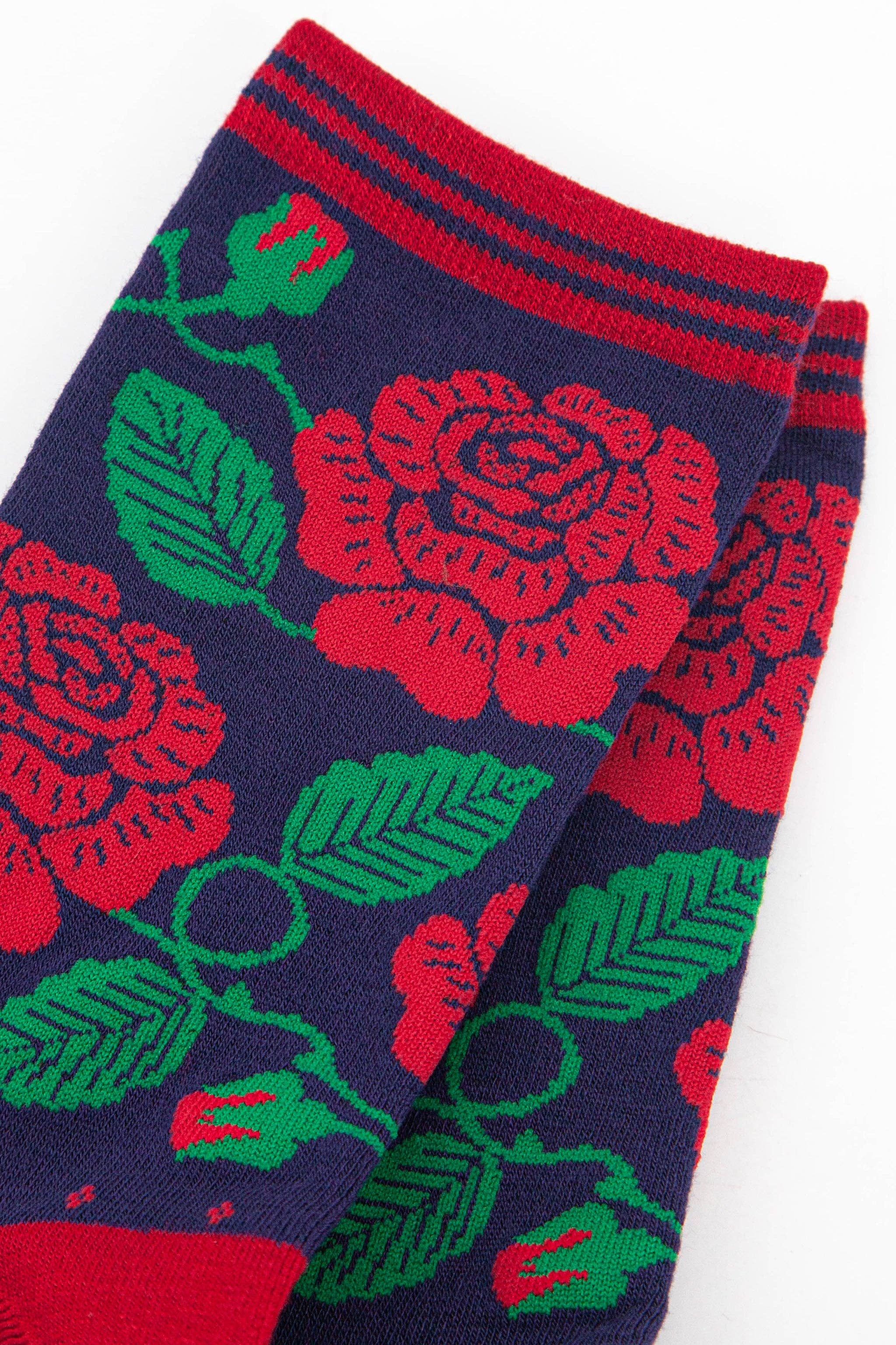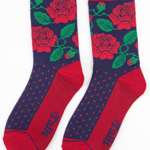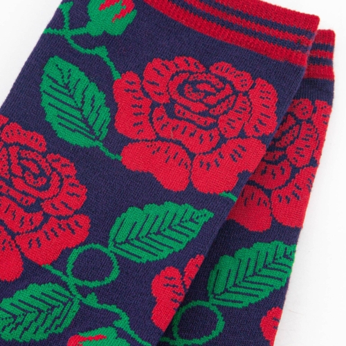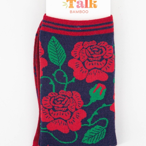 Women’s English rose floral bamboo socks with a striped detail cuff. Women’s English Rose Floral Print Bamboo Socks Anti-Bacterial & Anti-Fungal Soft & Breathable Eco-Friendly UK 3-7 | EU 36-40 | US 5-9 70% Bamboo, 27% Polyester, 3% Elastane Machine Wash (Delicate)