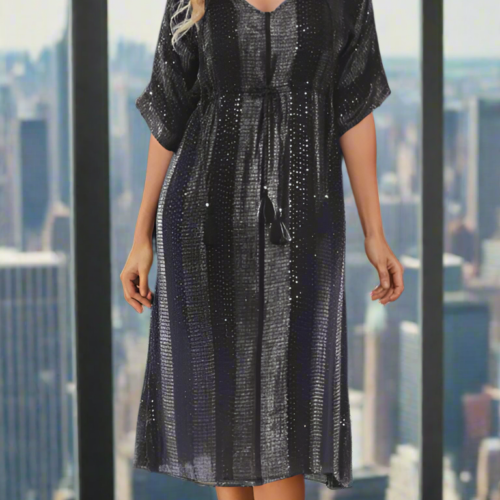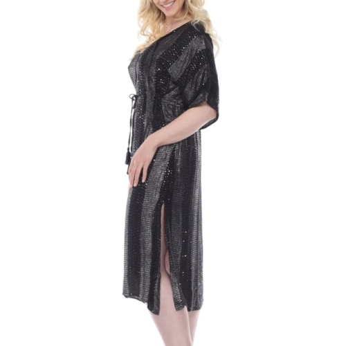Beach Kaftan for Bathing Suit Try out our bohemian style beach cover-up dresses and kaftans. Expertly cut with a metallic sheen, this calf-length tunic is ready for you to slip on over your bathing suit. The look is cool and casually chic. Check out the wholesale collection at La Moda. Lurex Maxi Kaftan; Tunic Dress Bohemian Beach Cover Up Beachwear, Resort Wear, Cruise 100% Rayon Available In White & Black Size: S/M, L/XL Washing Instruction: Hand Wash with Cold Water, Tumble Dry, Do not Iron Material:100% RayonPack Details:6 Pcs