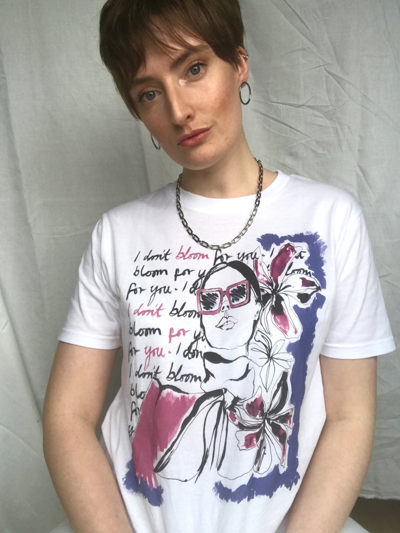 Womens T-shirt|Graphic print|White|Ethical Sustainable organic|Fashion Illustration|Inspirational Quote|Pink|Blue|black,cotton tee