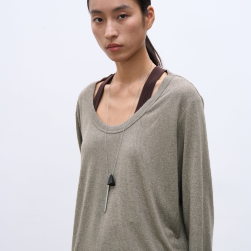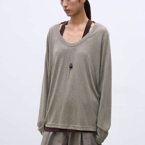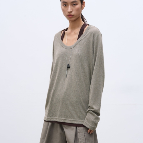 Flattering U-Neck SilhouetteThe U-neckline softens broad shoulders and refines the upper body, while the relaxed fit creates a slimming, elegant shape that complements every figure. Layered Design with Modern AppealCrafted in a chic light gray tone, this two-piece long-sleeve tee blends simplicity with depth. Its layered style offers dimension and effortless sophistication. Sustainable Comfort and VersatilityMade with recycled cotton, silk fiber, Tencel, and wool, the fabric is breathable, soft, and eco-friendly. Perfect for commuting or casual outings with timeless ease.