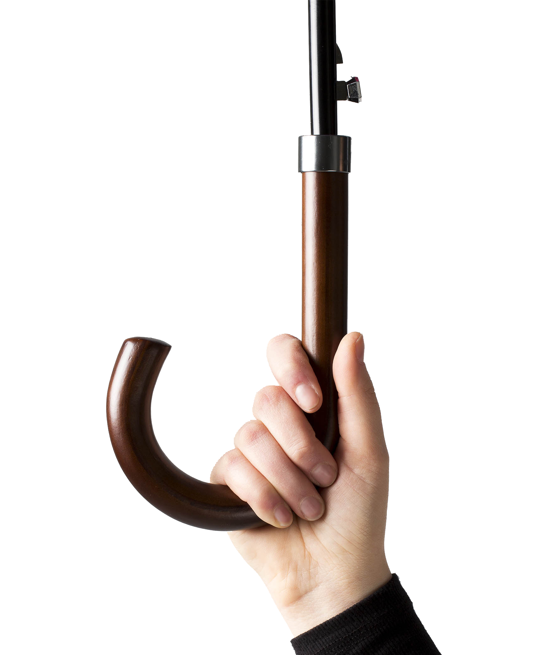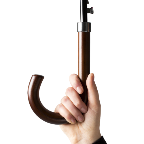 Auto open double layer straight umbrella with wooden handle.