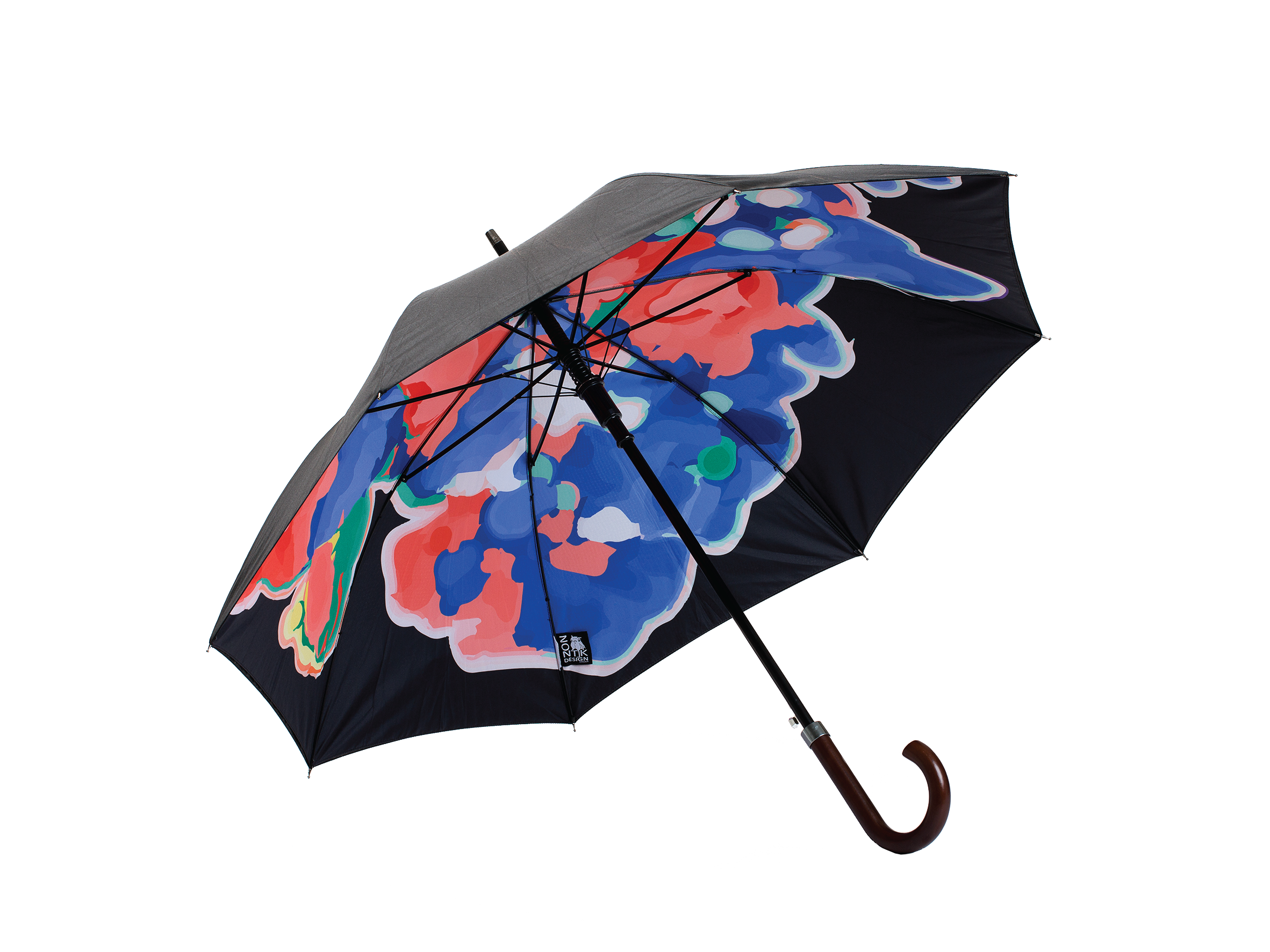 8 Ribs: H: 6 cm, L: 90 cm, W: 495 grams; Canopy Dimension: 105 cm Black outer and multicoloured inner pongee fabric. Our double pongee fabrics ensure higher resistance to tearing, abrasion and that Your umbrella dries quickly.