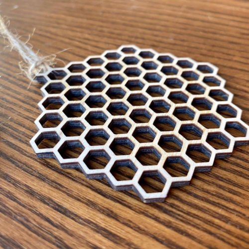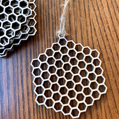 This rustic, lightweight wooden Christmas ornament has been laser cut from baltic birch wood. The honeycomb design is precise and intricate, and being made from wood and twine, it has a both homely and sophisticated feel to it.Ornament details:- Laser cut baltic birch wood and twine construction- Approximately 3″ in diameter – 1/8” thick