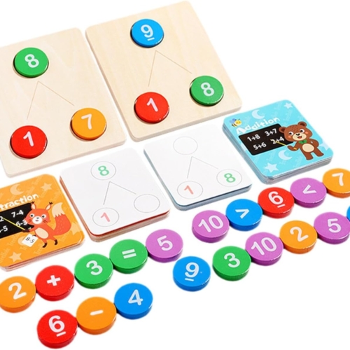 【Material】: Logical Thinking Training Math Toys are made of wooden, which is sturdy and practical , ensures it can withstand regular use without easily getting damaged, providing long time fun【Engaging Number Game】: This educational toy is designed to introduce children to number decomposition within 10, making it an ideal tool for preschool education. It helps young learners understand numbers through interactive play【Enhances Cognitive Skills】: The Number Toy serves as a great aid in developing hand eye coordination and brain function, guiding children from basic number recognition to simple arithmetic operations like addition and subtraction【Compact】:This Wooden Number Board is compact enough for convenient storage while still offering ample space for engaging play that early math skills development in children【Comprehensive Learning Set】: The package includes two baseboards, 25 number and symbol pieces, and 90 task cards, offers a variety of learning activities that progress from easy recognition tasks to more challenging arithmetic exercises