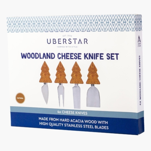 Introducing the tree-mendous Woodland Cheese Knife Set, where the tranquility of the forest meets the artistry of fine dining. This set of 4 stainless steel cheese knives features handles sculpted into charming tree shapes, crafted from exquisite acacia wood. Each knife is designed for precision slicing, effortless spreading, and elegant serving, bringing the essence of the forest to your table.