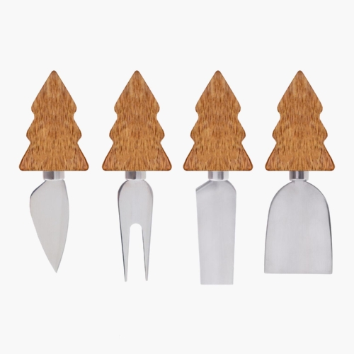 Introducing the tree-mendous Woodland Cheese Knife Set, where the tranquility of the forest meets the artistry of fine dining. This set of 4 stainless steel cheese knives features handles sculpted into charming tree shapes, crafted from exquisite acacia wood. Each knife is designed for precision slicing, effortless spreading, and elegant serving, bringing the essence of the forest to your table.