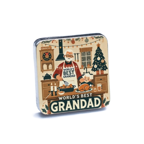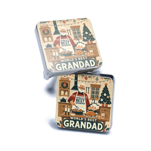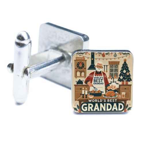 Celebrate the Joy of Christmas with Grandad Make this Christmas extra special for the world?s best grandad with these festive cufflinks. Featuring a delightful kitchen scene with a grandad preparing a holiday feast, these cufflinks are a tribute to love, warmth, and family traditions. Crafted for the Season Designed with care and precision, these cufflinks are more than an accessory; they?re a keepsake that embodies holiday cheer and family bonds. The durable finish ensures they shine for many Christmases to come. A Thoughtful and Festive Gift Whether for a stocking stuffer or a grand gesture, these cufflinks are a heartfelt way to show your appreciation for a grandad who lights up the holidays with his love and laughter. Celebrate the magic of Christmas with these “World?s Best Grandad Christmas Cufflinks” ? a token of love and festive spirit. Heartwarming Festive Design: Showcases a cheerful Christmas kitchen scene with “World’s Best Grandad” prominently displayed. Durable and Elegant Finish: Made with premium materials for a polished, long-lasting accessory. Perfect Christmas Gift: Celebrate the special grandad in your life with a thoughtful and unique present this holiday season. Versatile and Stylish: Adds a festive touch to formal or casual outfits, perfect for Christmas dinners, family gatherings, or events. Gift-Ready Packaging: Delivered in a sleek presentation box, ready to gift and bring joy.