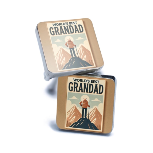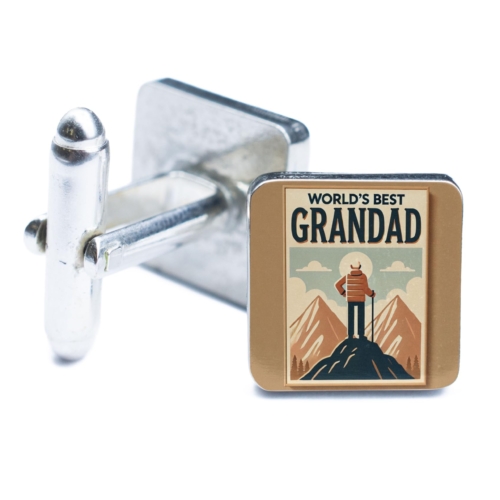 World?s Best Grandad Cufflinks ? Inspiring Mountain Adventure Design, Thoughtful Gift for Active and Adventurous Grandads (cuff-ds24-mountgdadrg)