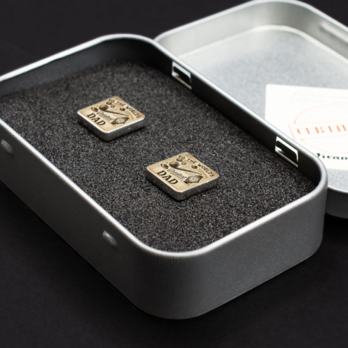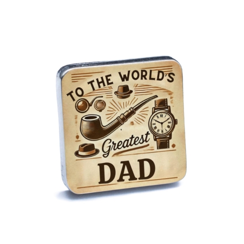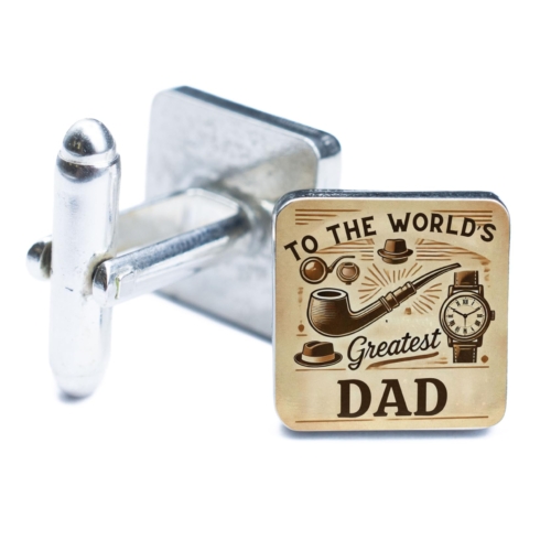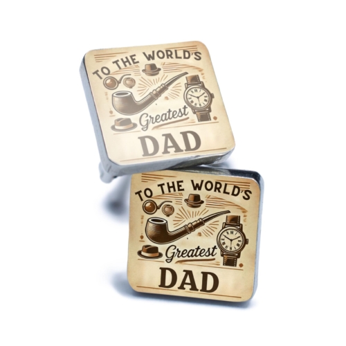Celebrate your dad?s timeless charm and enduring love with these World?s Greatest Dad Cufflinks. Featuring a vintage-inspired design with illustrations of classic symbols like a pipe, hat, and watch, these cufflinks are a heartfelt way to honor your father?s style and personality. The message ?To the World?s Greatest Dad? adds an extra touch of warmth and appreciation. Crafted from high-quality materials and finished with a polished sheen, these cufflinks are perfect for any occasion, whether it?s a formal event, a family gathering, or simply a day to remind your dad how much he means to you. Looking for the perfect gift? These cufflinks make an excellent choice for Father?s Day, birthdays, or as a token of love and gratitude. Show your dad he?s the best with these stylish and meaningful cufflinks! Classic and Timeless Design: Features vintage-inspired illustrations, including a pipe, hat, watch, and the message âTo the Worldâs Greatest Dad.â Premium Quality: Made from high-quality metal with a polished finish for lasting durability and style. Perfect Gift for Dad: A thoughtful present for Fatherâs Day, birthdays, or any occasion to celebrate the worldâs greatest dad. Versatile Accessory: Adds a touch of sophistication and sentimentality to both formal and semi-formal outfits. Secure and Comfortable Fit: Reliable cufflink mechanism ensures ease of use and a snug fit.