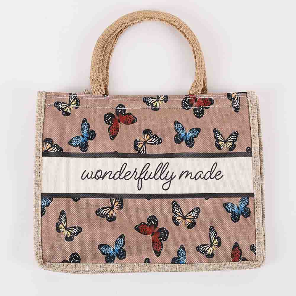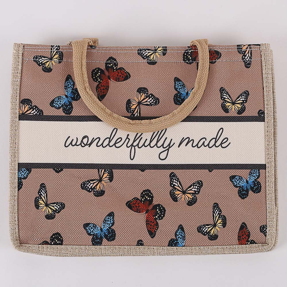 Celebrate your uniqueness and embrace your purpose with our beautifully designed Wonderfully Made canvas tote bag. Adorned with a vibrant butterfly design, this tote is a perfect blend of style, inspiration, and practicality. Crafted from 100% sturdy yet lightweight canvas, itís built to withstand daily use while adding a touch of elegance to your wardrobe. Whether youíre heading to the market, gym, beach, or running errands, this tote is the ideal companion for all your activities.