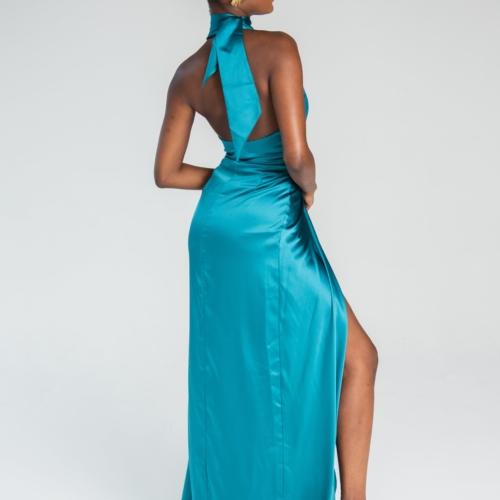 The WUNMI DRESS – BLUE is a stunning piece of clothing with a flattering v-neckline and a unique halter draping detail. Its bright blue colour is perfect for summer events or a day out in the sun. The dress is designed to complement your figure and make you feel confident.