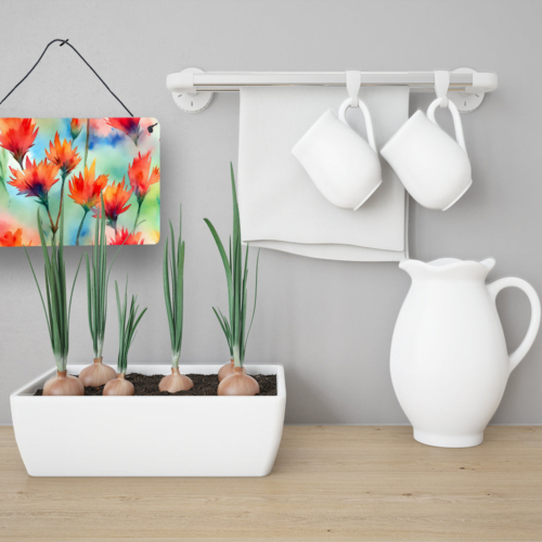 Wall or Door Hanging Prints featuring breed specific Wyoming Indian Paintbrush artwork. Add a splash of color and artistic flair to any indoor or outdoor space with our Aluminum Artwork Prints. These unique prints, featuring full-color, multicolor designs, provide a versatile decorative touch that can enhance a kitchen, bathroom, office, outdoor patio, or even the front door area. Each print measures 8 inches by 12 inches, making it the perfect size to catch the eye without overwhelming your space. Constructed with durability in mind, these prints can be placed outdoors and withstand direct sunlight for a significant amount of time before any fading begins. Designed for easy installation, each print features a black hanging rope and has a lightweight profile. This allows for quick hanging with just about any nail or screw. For safety and aesthetic appeal, the print’s corners are gently rounded. The back of the print showcases a brushed silver color for an added touch of elegance. Rust and fade-resistant, these Aluminum Artwork Prints are not only beautiful but are also built to last. Elevate your space with these stunning prints, crafted with care and artistic passion.