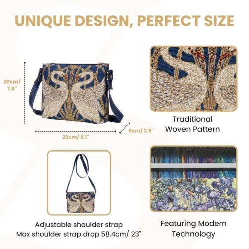 XB02-ART-WC-SWAN | WALTER CRANE SWAN CROSS BODY BAG PURSE HANDBAG