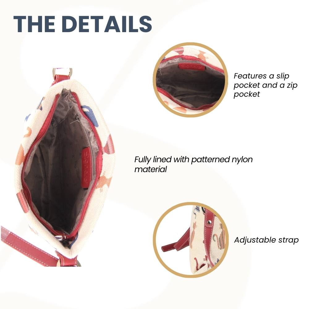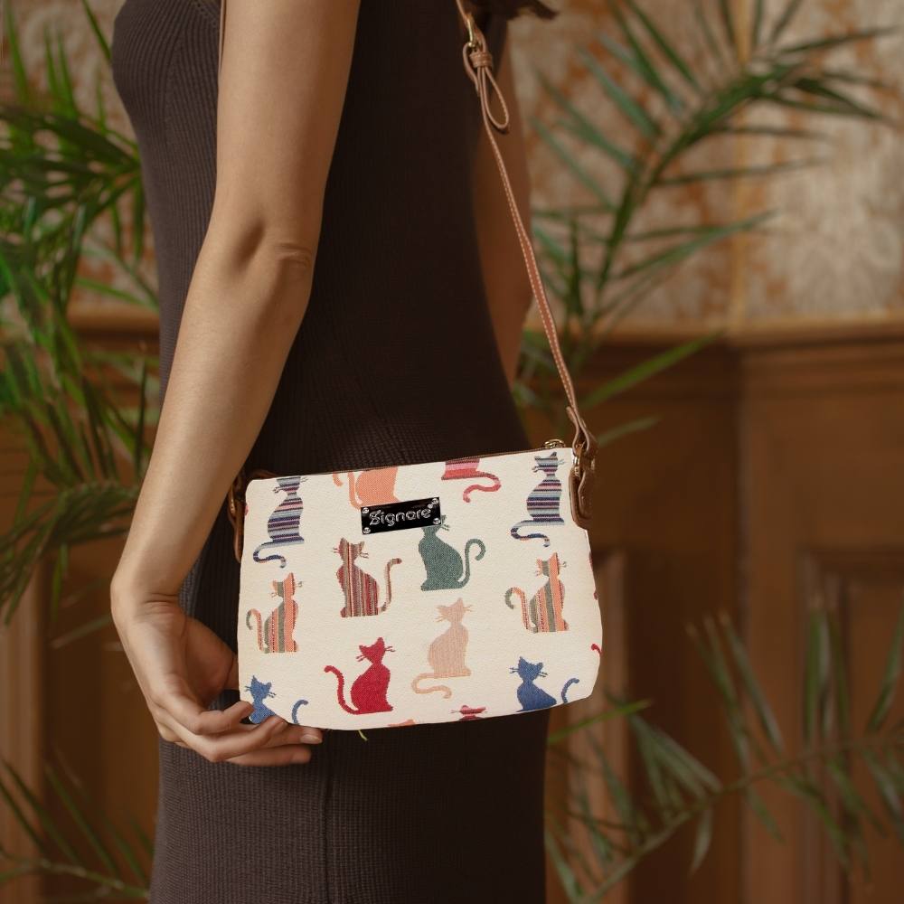A nifty tapestry satchel from crossbody bags for ladies category of products. This cross body bag is ideal for your daily essentials and it is compactly designed in its appearance.