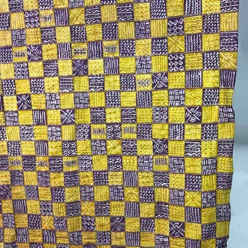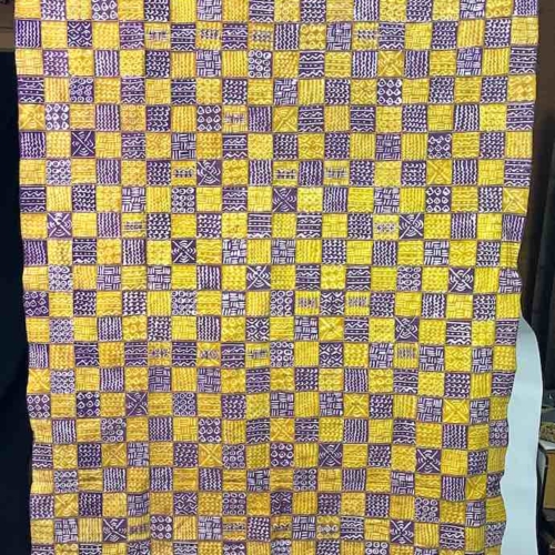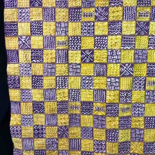 These extraordinary, contemporary handwoven, hand-dyed cotton textiles are an innovative modification of 2 traditional well-known Malian tribal textile techniques: The mudcloth fabric dying technique and the colorful narrow band double heddle dragstone loom weaving of the Fulani people of Mali (also known as Peulh). Quite large, these are used as blankets in Africa but for Western use they are more useful as tabletop, a modified bedspread or a gorgeous wall tapestry. This textile measures 78 x 50″ (198 x 127 cm)