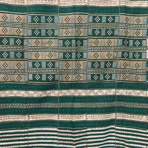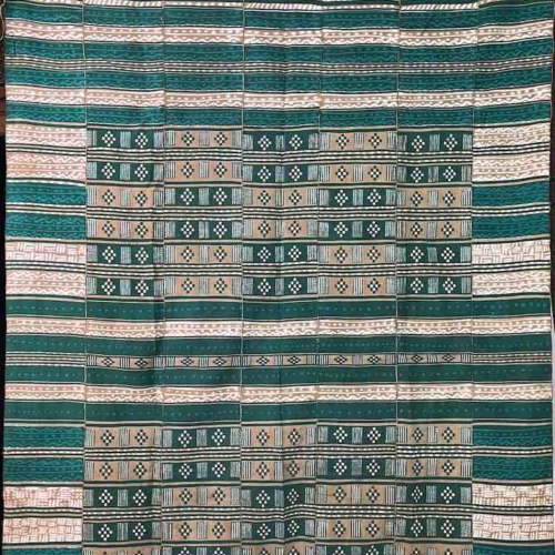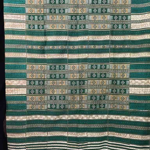 These extraordinary, contemporary handwoven, hand-dyed cotton textiles are an innovative modification of 2 traditional well-known Malian tribal textile techniques: The mudcloth fabric dying technique and the colorful narrow band double heddle dragstone loom weaving of the Fulani people of Mali (also known as Peulh). Quite large, these are used as blankets in Africa but for Western use they are more useful as tabletop, a modified bedspread or a gorgeous wall tapestry. This textile measures 83 x 49″ (211 x 124 cm)