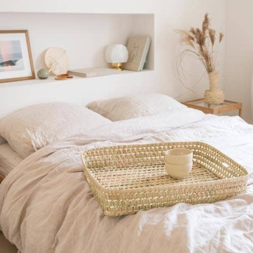 Dimensions: approximately 60 cm x 40 cm. Height: 8 to 10 cm.Authentic Moroccan Craftsmanship.This spacious palm leaf tray is perfect for adorning your coffee table, ideal for holding magazines or serving dishes!