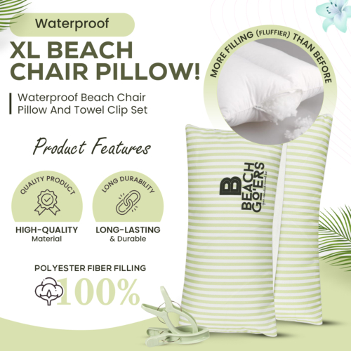 The Extra Large Beach Chair Pillow helps you maximize your relaxation on a beach or at the pool! Our lightweight and fluffy beach pillows adjust under the head and neck to ensure you enjoy spending your day lounging at the beach or by the pool. We have created this unique product so you can say goodbye to all those sunny days spoiled by sore necks.