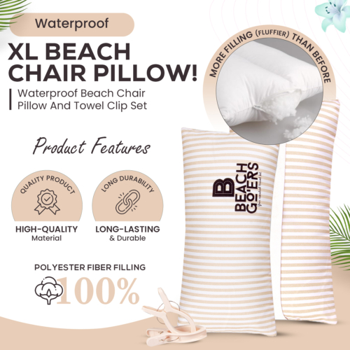 The Extra Large Beach Chair Pillow helps you maximize your relaxation on a beach or at the pool! Our lightweight and fluffy beach pillows adjust under the head and neck to ensure you enjoy spending your day lounging at the beach or by the pool. We have created this unique product so you can say goodbye to all those sunny days spoiled by sore necks.