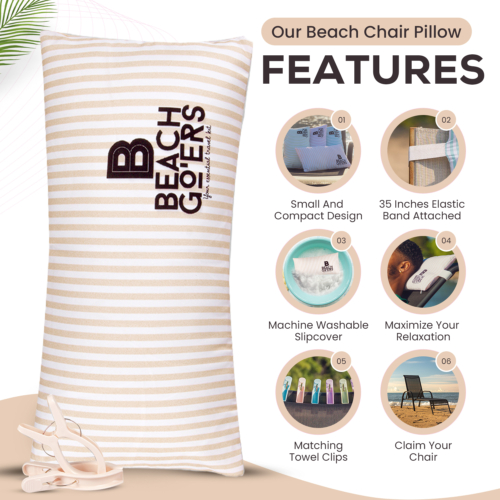 ✈ The compact design of our XL Beach Chair Pillows allows for easy storage while on the move in any carry-on, beach bag, backpack, or suitcase!