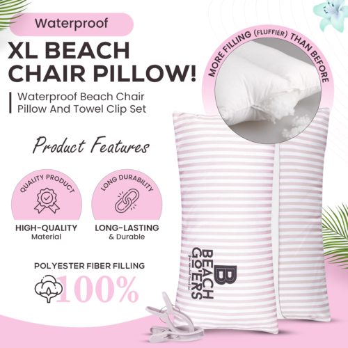 XL Waterproof Beach Chair Pillow and Towel Clips Set | Pastel Purple
