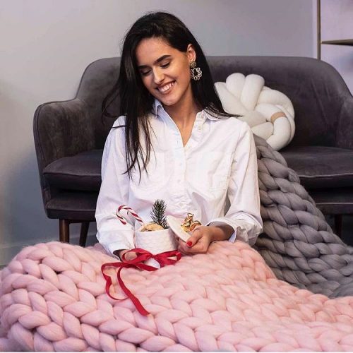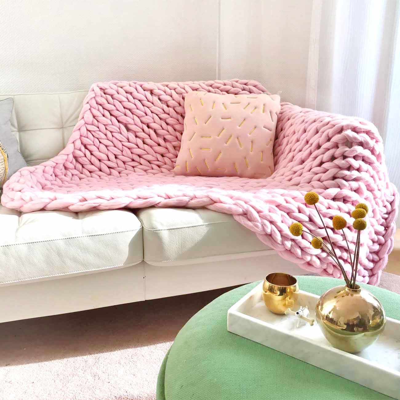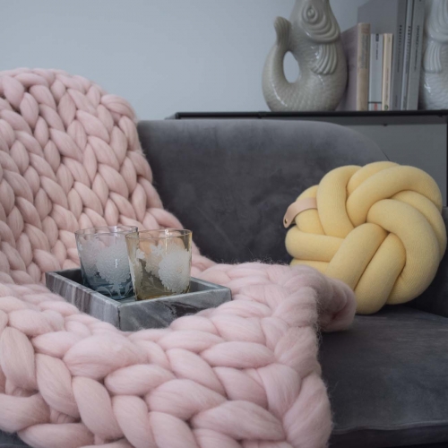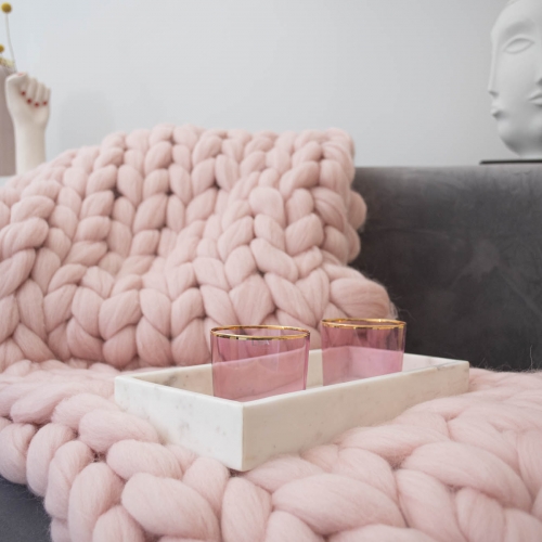 XL Wool Blanket Cosima Chunky Knit Babypink Medium