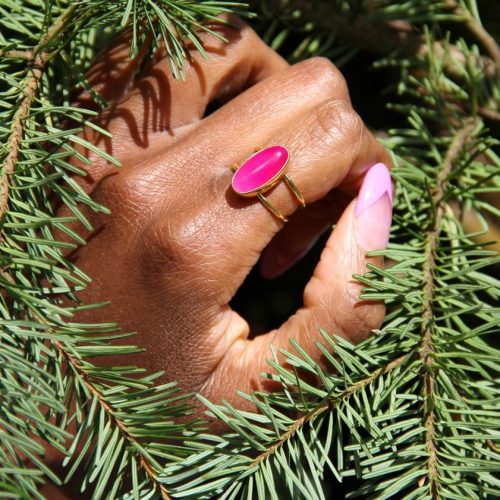 YAA YAA LONDON Pink Bean Gemstone Gold Adjustable Ring