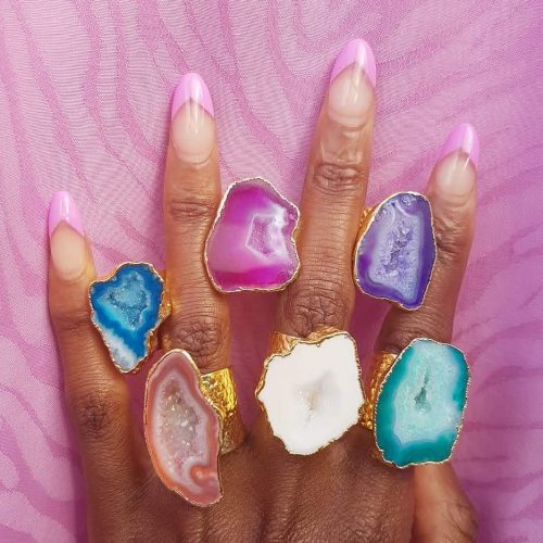 Ring size: slightly adjustable and best suited for slim to medium sized fingers. There is some adjustment in the metal to pinch the ring gently to make it a little smaller or slightly larger, but please note that this is a sturdy strong ring, made to support a large semi-precious stone.