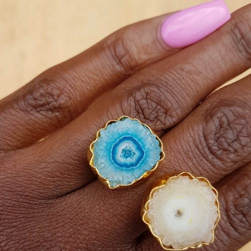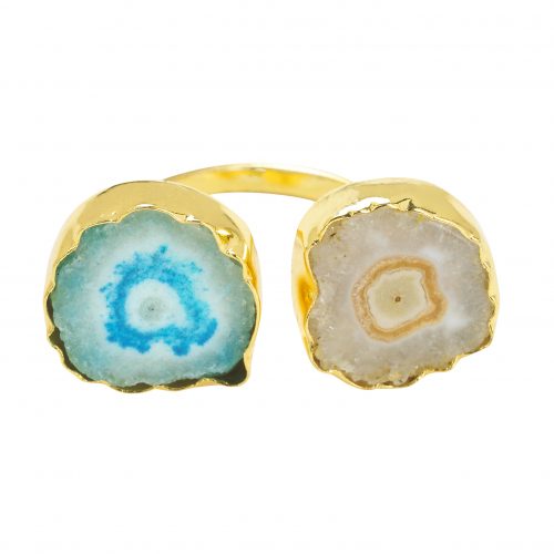 YAA YAA LONDON Yellow Turquoise Blue Solar Quartz Stone Gold Adjustable Ring