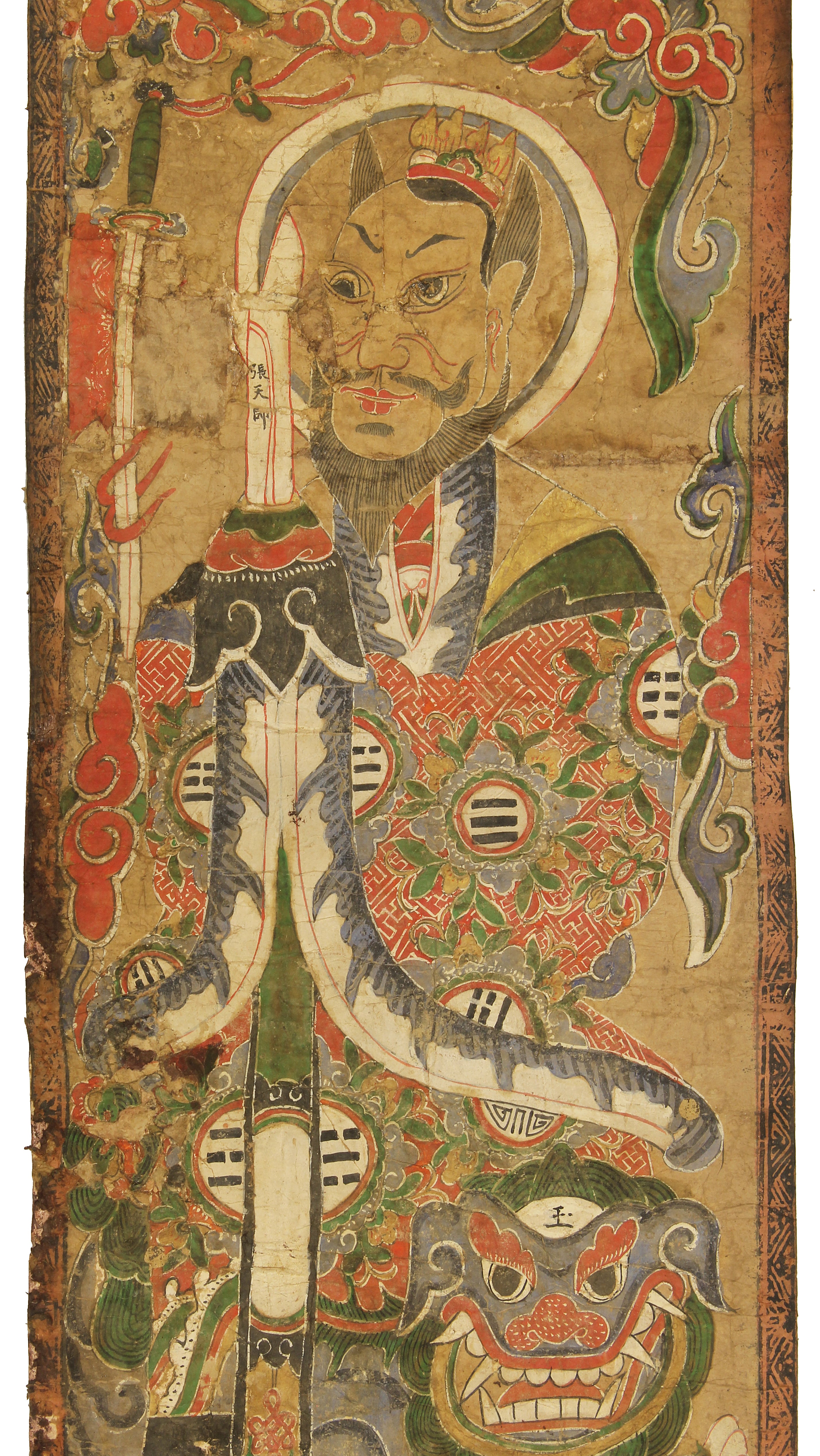 This Yao Shaman ceremonial painting was carefully crafted on mulberry paper in the form of a scroll, taking nearly one to two months to complete. Made from local dyes that were available, the colors of the paintings often closely resemble the colors in the clothing that the Yao people make and wear. This painting is believed to be from the 19th and early 20th centuries, which is a necessary tool used in initiation ceremonies of aspiring priests and shamans. It is believed that shamans and priests act as a gateway between the physical and spiritual worlds. The Yao people originally lived in the southern provinces of China, then migrated south into the mountainous regions of Vietnam. The beautiful artworks offer highly detailed representations people, shamans, and ancestors, and are essential for invoking spirits during ceremonies and for transmitting knowledge between generations. Many shaman ceremonial paintings and artifacts have found new homes in private collections or in museums. This painting measures: 38″ x 15″