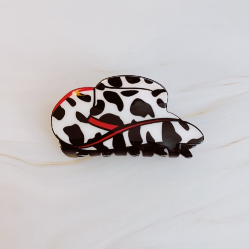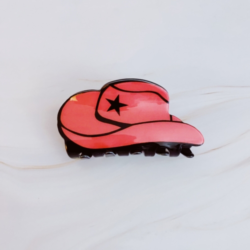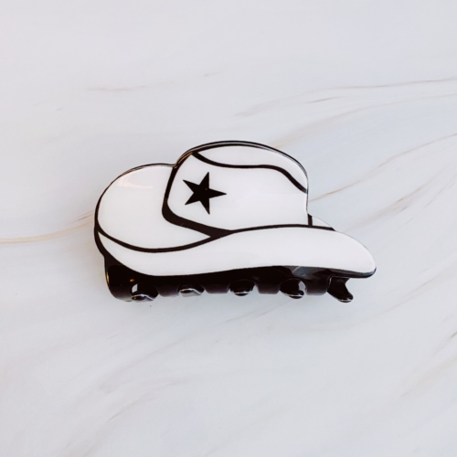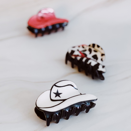 Add a touch of western flair to your looks with Yeehaw Cowgirl Star Hair Claw. This fun and trendy hair claw, shaped like a cowgirl hat, holds medium capacity for a secure grip on your hair. Dimensions: approximately 3.5″ x 1.5″ x 1.5″ Made in China