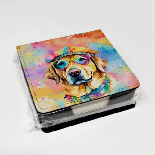PU Leather Note Paper Holder featuring breed specific Yellow Labrador artwork. Elevate your workspace with this PU Leather Note Paper Holder, crafted to resemble luxurious leather without the use of animal products. Made from durable synthetic PU leather, it offers both a premium look and eco-friendly appeal. This note holder, compactly sized at 4.25 x 4.25 x 1.25 inches, includes about 160 sheets of 3.75 x 3.75-inch note paper—ideal for quick notes and reminders. An exclusive artist-designed cover makes each holder uniquely vibrant, adding a splash of color and personality to any desk or office. The discrete design keeps note paper hidden, maintaining a neat and organized workspace. Perfect as a gift or for personal use, this stylish holder is refillable with standard paper, ensuring long-lasting utility. A must-have for anyone seeking a sophisticated, artful touch to their workspace while supporting animal-friendly products. Add style, organization, and creativity to your everyday routine with this elegant note paper holder.