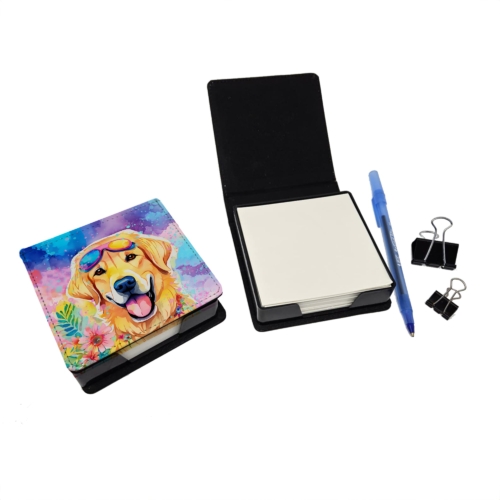 PU Leather Note Paper Holder featuring breed specific Yellow Labrador artwork. Elevate your workspace with this PU Leather Note Paper Holder, crafted to resemble luxurious leather without the use of animal products. Made from durable synthetic PU leather, it offers both a premium look and eco-friendly appeal. This note holder, compactly sized at 4.25 x 4.25 x 1.25 inches, includes about 160 sheets of 3.75 x 3.75-inch note paper—ideal for quick notes and reminders. An exclusive artist-designed cover makes each holder uniquely vibrant, adding a splash of color and personality to any desk or office. The discrete design keeps note paper hidden, maintaining a neat and organized workspace. Perfect as a gift or for personal use, this stylish holder is refillable with standard paper, ensuring long-lasting utility. A must-have for anyone seeking a sophisticated, artful touch to their workspace while supporting animal-friendly products. Add style, organization, and creativity to your everyday routine with this elegant note paper holder.
