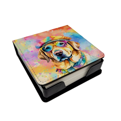 PU Leather Note Paper Holder featuring breed specific Yellow Labrador artwork. Elevate your workspace with this PU Leather Note Paper Holder, crafted to resemble luxurious leather without the use of animal products. Made from durable synthetic PU leather, it offers both a premium look and eco-friendly appeal. This note holder, compactly sized at 4.25 x 4.25 x 1.25 inches, includes about 160 sheets of 3.75 x 3.75-inch note paper—ideal for quick notes and reminders. An exclusive artist-designed cover makes each holder uniquely vibrant, adding a splash of color and personality to any desk or office. The discrete design keeps note paper hidden, maintaining a neat and organized workspace. Perfect as a gift or for personal use, this stylish holder is refillable with standard paper, ensuring long-lasting utility. A must-have for anyone seeking a sophisticated, artful touch to their workspace while supporting animal-friendly products. Add style, organization, and creativity to your everyday routine with this elegant note paper holder.