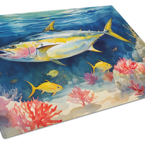 Glass Cutting Board featuring breed specific Yellowfin Tuna artwork. Introduce your kitchen to the vibrant, large Decorative Glass Cutting Board from Caroline’s Treasures. Crafted from resilient tempered glass, this board is not only a utilitarian necessity but also a colorful art piece. With its generous dimensions of 15 inches in height and 12 inches in length, it offers ample space for all your cutting needs. Every piece showcases captivating artwork from distinguished artists, bringing an aesthetic edge to your kitchen. Beyond its attractive design, this cutting board ensures your countertop stays pristine and unscathed, owing to its heat-resistant properties. Engineered with user convenience in mind, it features non-skid feet for stability, and rounded corners for additional safety. Its robust construction renders it virtually unbreakable, guaranteeing longevity. The board comes with protective feet bumpers, maintaining its position during use. This product is recommended to be hand washed only. Proudly printed and assembled in the United States, this cutting board exemplifies superior craftsmanship. With Caroline’s Treasures’ Decorative Glass Cutting Board, you’re investing in a blend of functionality and artistic flair.
