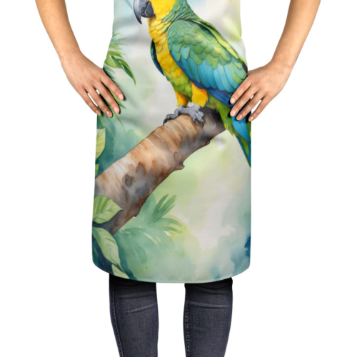 Apron featuring breed specific Yellownaped Amazon Parrot artwork. Elevate your cooking, baking, and grilling experiences with our versatile Kitchen or BBQ Apron. This Bib Style apron isn’t just limited to culinary activities – it also serves as an excellent baking apron, artist apron, server apron, gardening apron, or even a dog grooming apron. The apron showcases vibrant full-color artwork contributed by one of our talented artists, bringing a dash of style to your daily tasks. With dimensions of approximately 27″W x 30″H, it provides ample coverage to protect your clothing from spills and splashes. Our apron is meticulously crafted from 100% Ultra Spun Polyester, known for its durability and lightweight nature. The apron comes with white tie straps, ensuring a comfortable and adjustable fit for all. It’s a perfect choice for kitchen apron enthusiasts, whether you are a woman or a man. Designed for easy maintenance, this apron is fully machine washable. The quick-drying polyester material actively reduces staining, keeping your apron looking fresh and new for longer. Our beautifully designed apron isn’t just a functional kitchen accessory – it’s a fashion statement in the culinary world!