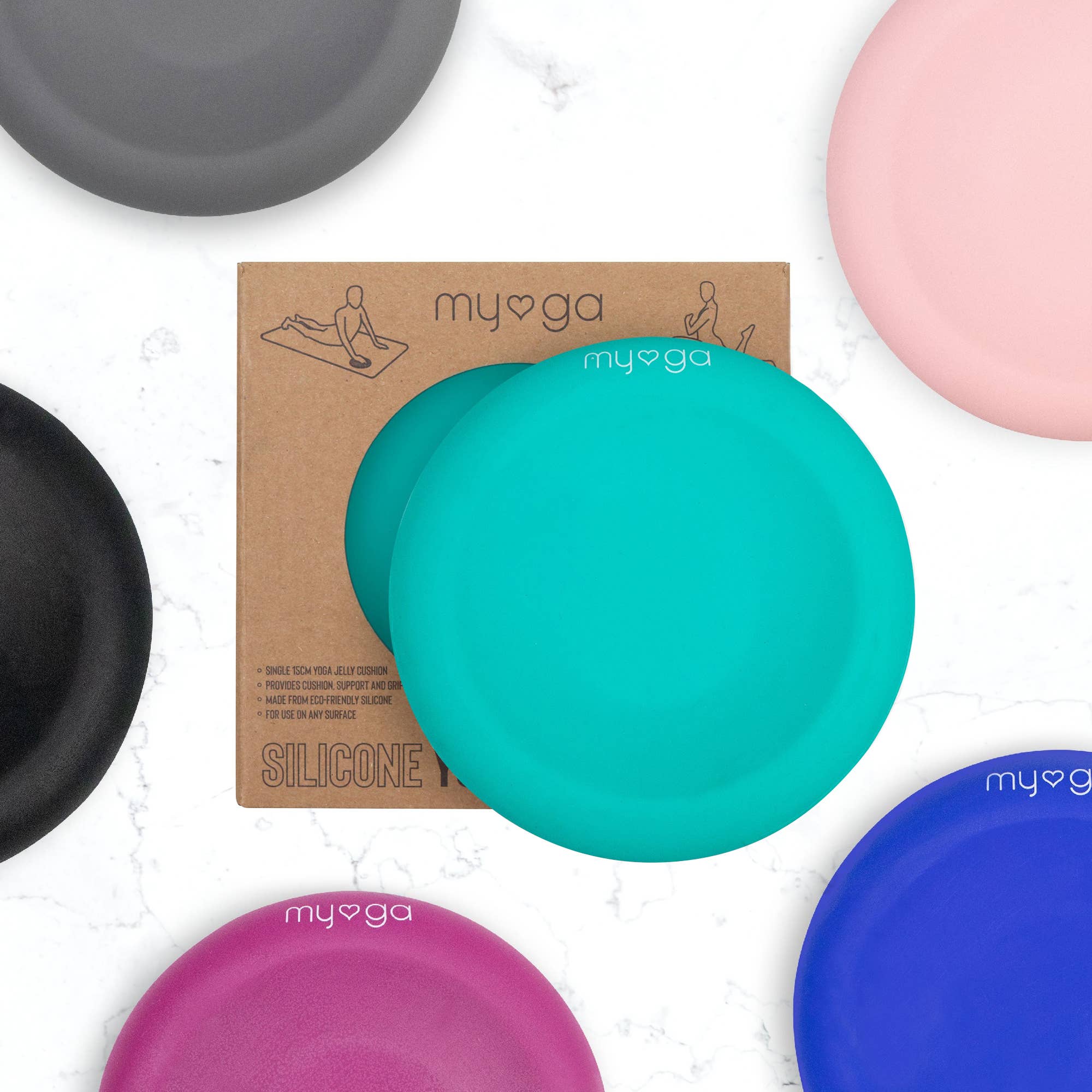 Available in 6 different colours, the yoga support pads are also known as yoga jellies. These silicone jellies are a fantastic prop for yogis with ailments including arthritis, carpal tunnel syndrome, wrist pain, sensitive knees, and elbows. Our jellies are also great those of you who simply need a little extra softness. Myga yoga jelly support pads can help avoid or reduce joint injuries and pain relief in the hands, wrists, elbows, knees, hips, head, and coccyx. Each single order includes one jelly pad and is cased in an eco-friendly packaging.