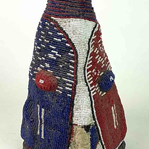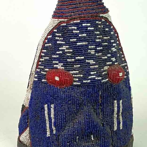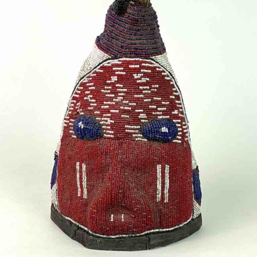 This vintage headdress is an exceptional version of this traditional Yoruba dance accessory. Headdresses of this genre are common and well known examples of Yoruba ritual culture. They are used by the Yoruba people of Nigeria in a ceremonial dance. This headdress measures 12″ tall x 7 1/2″ diameter at the base (30.5 x 19 cm)