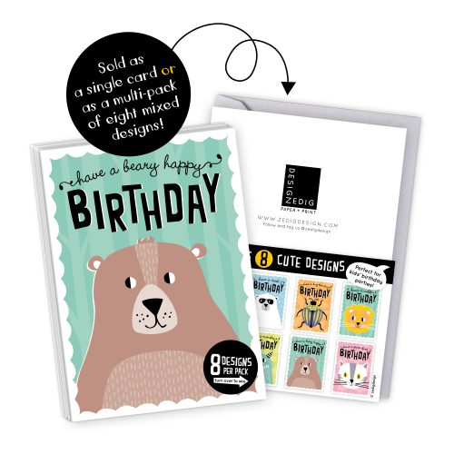 Have a beary happy birthday! This card is part of my Paw Prints range. Sold individually OR in a multi-pack of eight mixed designs (see my other listings). Perfect for kids’ birthday parties!