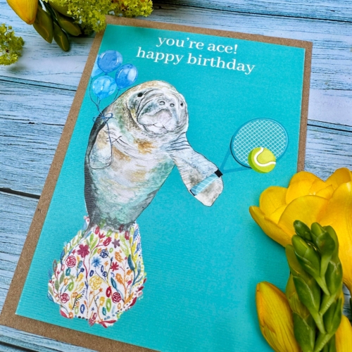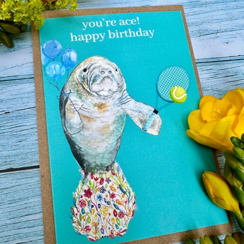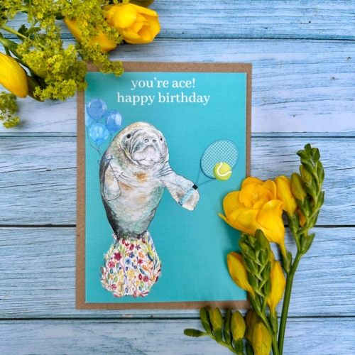 You’re ace Manatee Eco Friendly Card Colourful Funny Tennis | Eco Friendly Card Funny Colourful | Nature | Zoo | Water | Sea| Colourful | Blank | Friend | Funny | Occasion | Greetings | Rainbow | Birthday