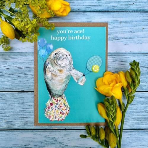 You’re ace Manatee Eco Friendly Card Colourful Funny Tennis | Eco Friendly Card Funny Colourful | Nature | Zoo | Water | Sea| Colourful | Blank | Friend | Funny | Occasion | Greetings | Rainbow | Birthday