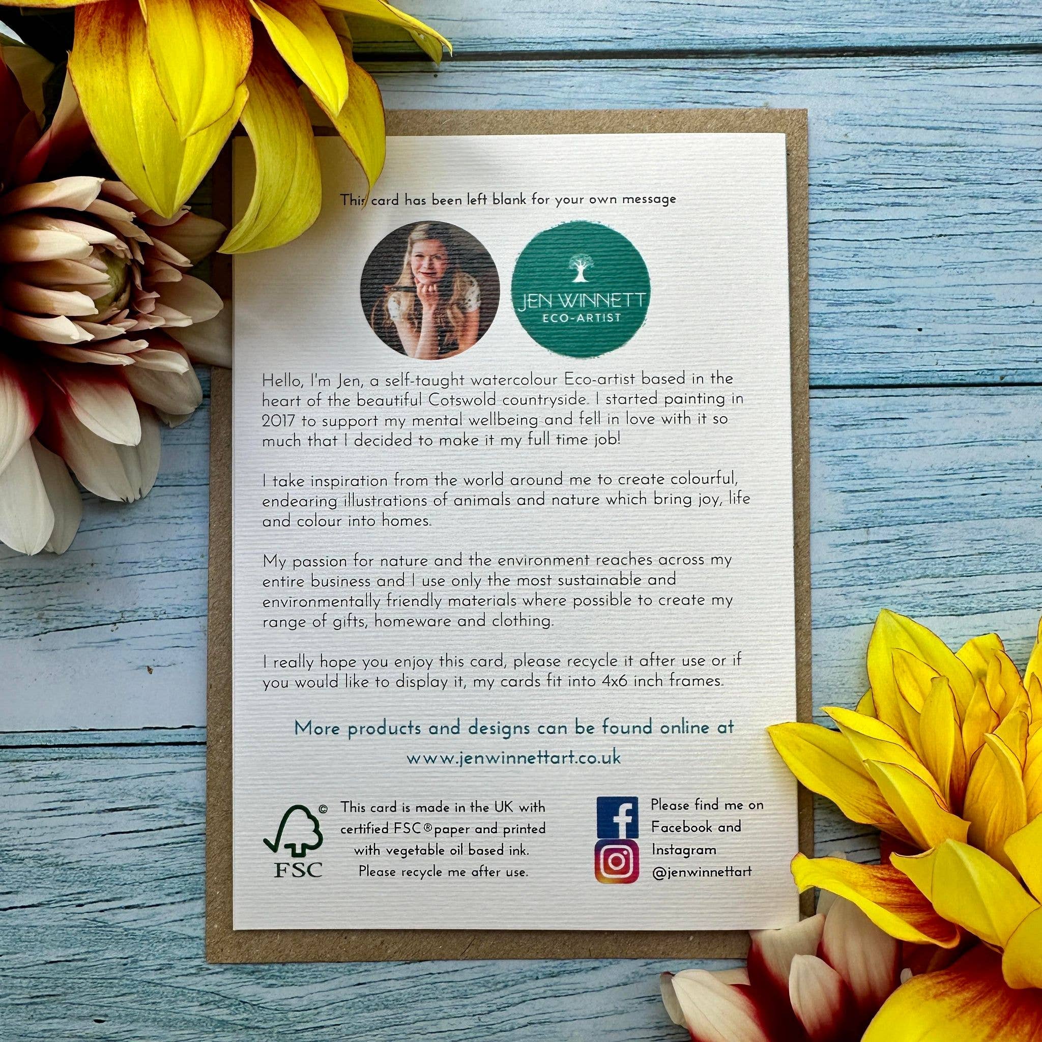 These Eco-Cards have been produced in the UK by a Carbon Neutral Eco-friendly company. In line with my ethos of minimising impact on our beautiful planet .